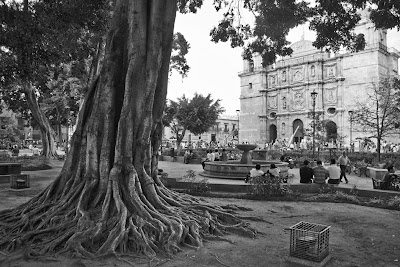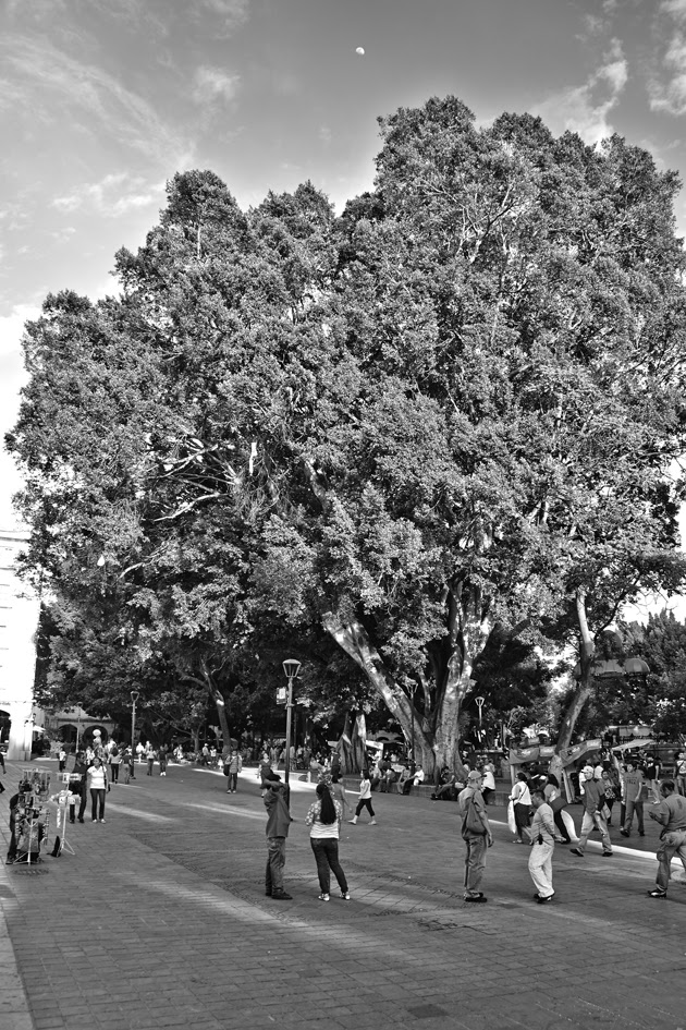 Me invitó el munícipe Luis Ugartechea (2011-2013) a pertenecer a su Consejo Honorario de Cultura y allí le propuse que el Cabildo de Oaxaca sembrara otro guaje para conmemorar el bicentenario de la Independencia de México y el Centenario de la Revolución. Les solicité que quedara un guaje en la Alameda como símbolo del presente para el porvenir, imaginando que dentro de 100 años ese arbolito tendrá muchas cosas que “decir” y habrá “visto” muchas cosas más suceder en el corazón de la ciudad. Así se hizo en noviembre de 2010 y aquí está la foto reciente de este ejemplar. De esta forma aparecieron pues dos guajes en nuestros bellos Zócalo y Alameda de León... donde también la estupidez humana actual ha conseguido matar ejemplares que fueron sembrados por iniciativa de Benito Juárez y Antonio de León, el primero Benemérito de América y el segundo Benemérito de Oaxaca. Cuando uno acepta servir a título honorario a su Ayuntamiento acaba uno con el sabor amargo de comprobar que los regidores y toda la burocracia municipal son una bola de "asnos" que toman esos cargos como trampolín para sus intereses partidistas. A veces el mismo presidente municipal ni se entera o ni tiempo le da de escuchar más directamente a la sociedad pues está encerrado por una "burbuja" compuesta por ignorantes y ambiciosos.