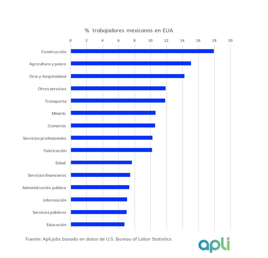 En este contexto, la plataforma de empleo Apli reportó que los sectores más afectados con la expulsión o cierre de oportunidades de empleo para los migrantes mexicanos en Estados Unidos son: