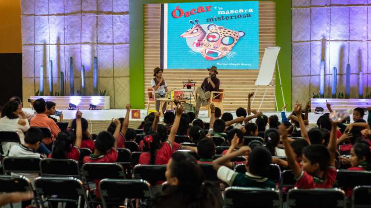 Oaxaca.- El reconocido ilustrador de literatura infantil, Marcos Almada, presentó su serie de libros de Óscar el Tlacuache en el Foro El Recreo como parte del Programa Infantil y Juvenil de la 38 Feria Internacional del Libro de Oaxaca (FILO), ante niñas y niños oaxaqueños que conocieron de cerca a este autor.