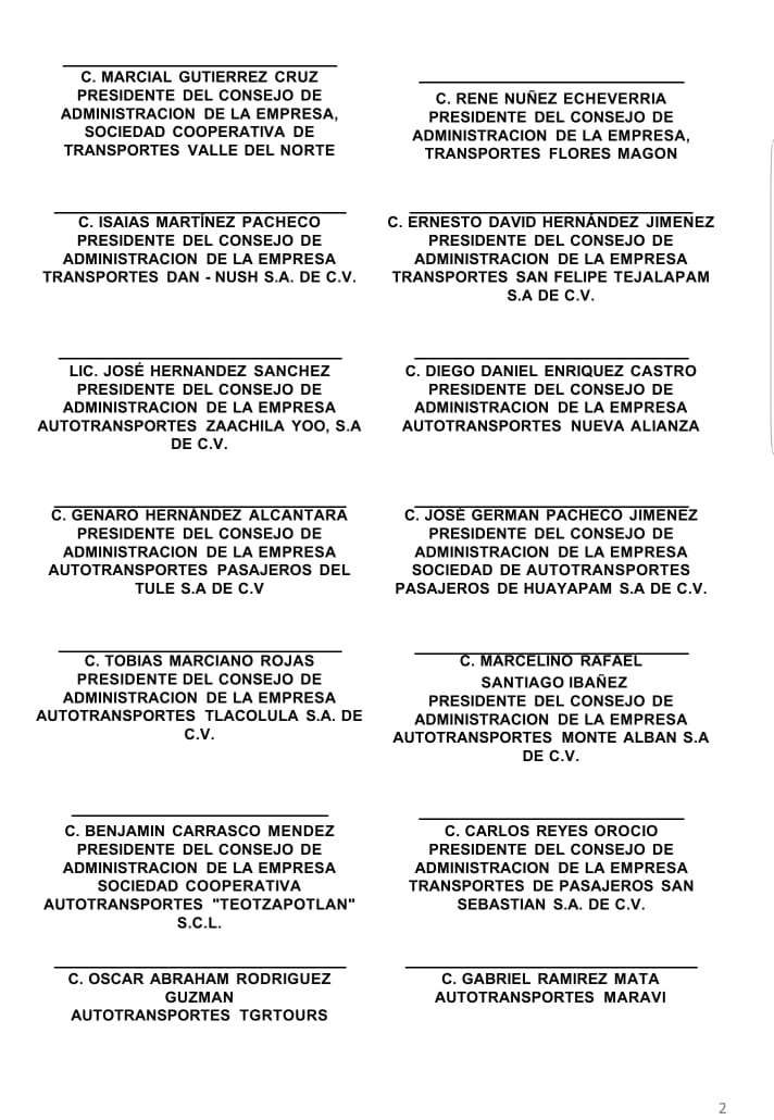 Los concesionarios del servicio público colectivo de transporte de pasajeros, urbanos, sub urbanos y turísticos de la Ciudad de Oaxaca y municipios conurbados, acordamos que nuestras unidades de motor no podrán brindar el servicio a las personas que conforman la “caravana migrante”, ya sea en renta o préstamo, como lo han expresado en medios de comunicación”.