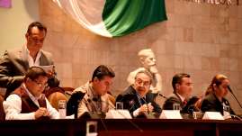 Durante la comparecencia de Carlos Mendoza Martínez del Campo, encargado de la Secretaría de Administración en el Gobierno Est...