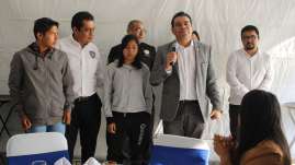 El rector Eduardo Bautista reconoce y felicita a los estudiantes Ángela Galilea Hernández y Eder Javier Núñez por la hazaña d...