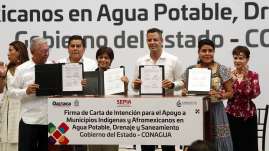 l gobernador Alejandro Murat atestiguó la firma de una Carta de Intención entre la Sepia y Conagua para destinar recursos a favor de comunidades
