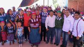 La secretaria de Asuntos Indígenas, Eufrosina Cruz Mendoza y la presidenta honoraria del DIF Estatal, Ivette Morán, inauguraron la pavimentación