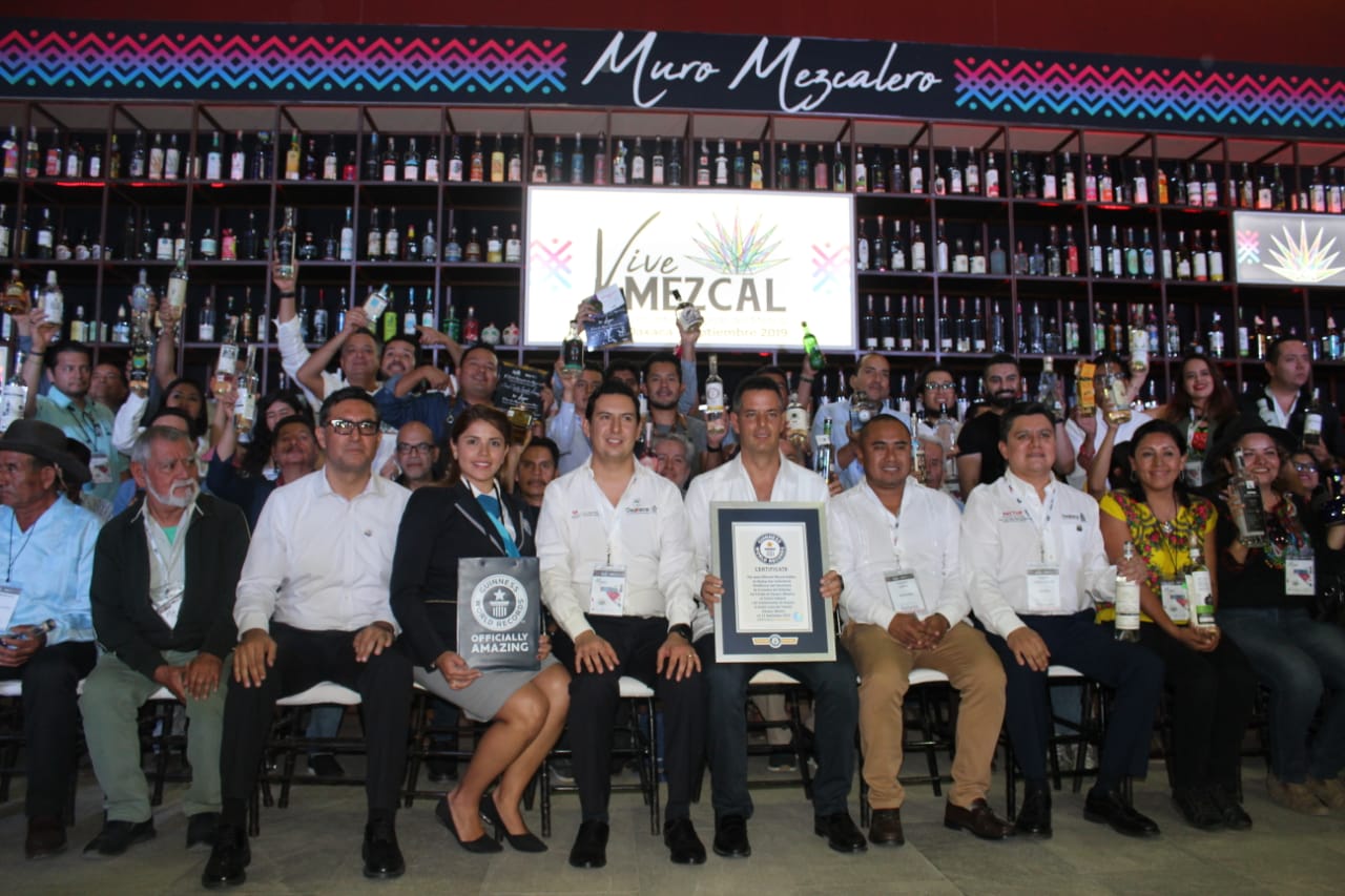 Oaxaca . Con la exhibición de 369 botellas en el muro mezcalero instalado en el Foro Internacional Vive Mezcal 2019, Oaxaca instauró el Récord Guinness con el mayor número de etiquetas de mezcal en un sólo lugar.
