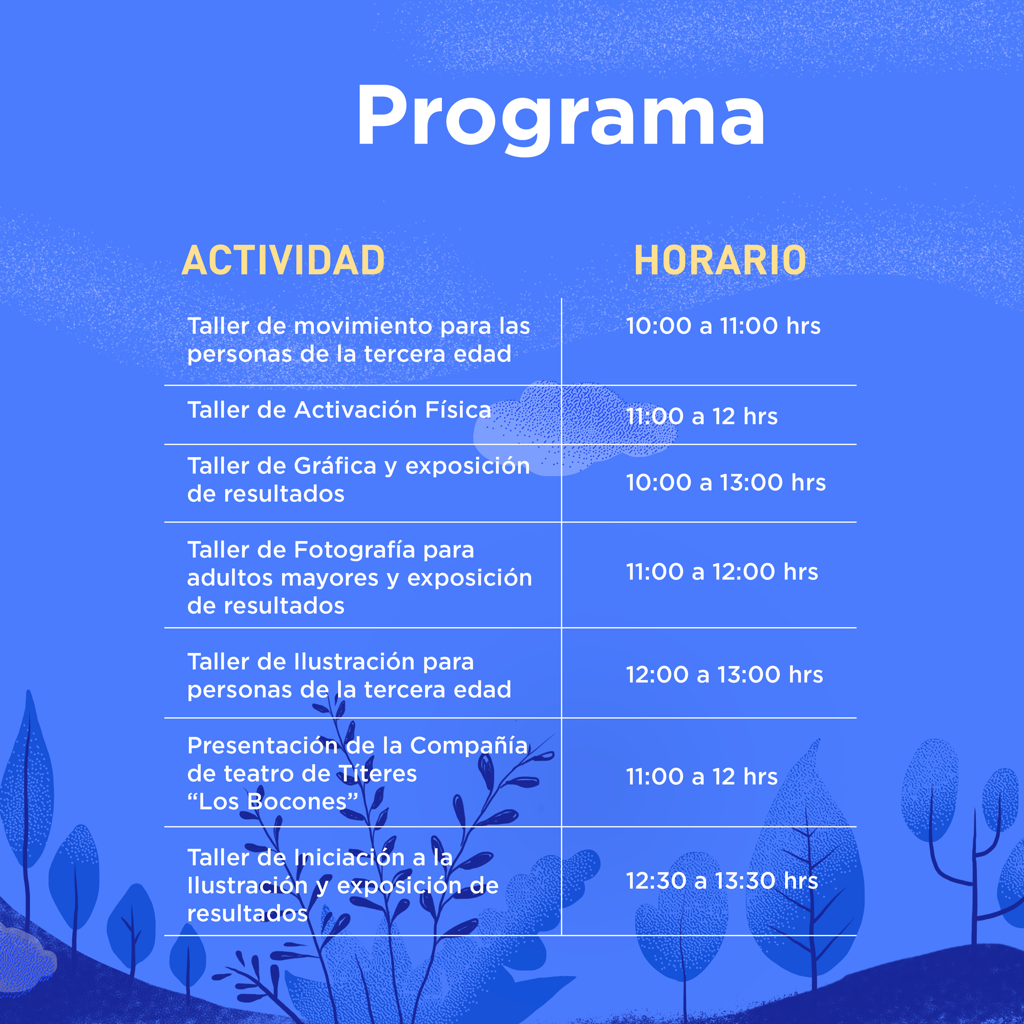 Gracias a esta colaboración maestros especializados trabajaron con grupos de distintas edades, niños, adolescentes, adultos y adultos mayores, en las áreas de: fotografía, danza, literatura, gráfica, música, ilustración y títeres.
