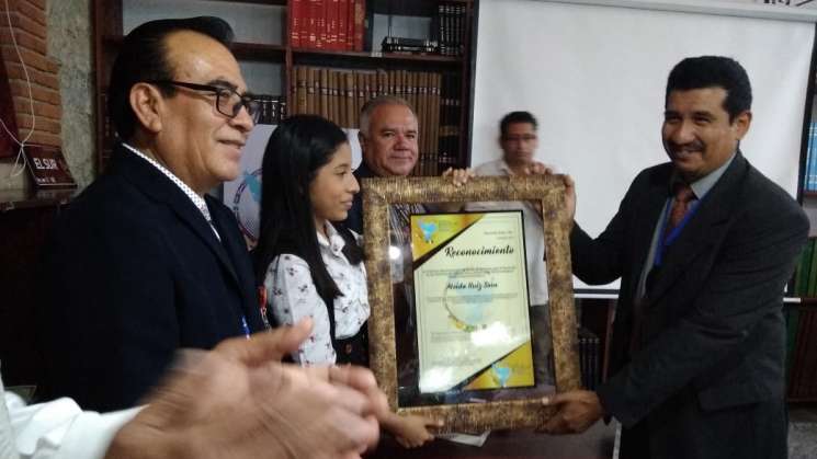 El reconocimiento lo recibió de Armando Figueroa Colmenares, apoderado legal de la mencionada comisión, además de otros miembros asistentes, quienes con el público reunido en la Hemeroteca Pública de Oaxaca, aplaudieron la trayectoria de esta pequeña.