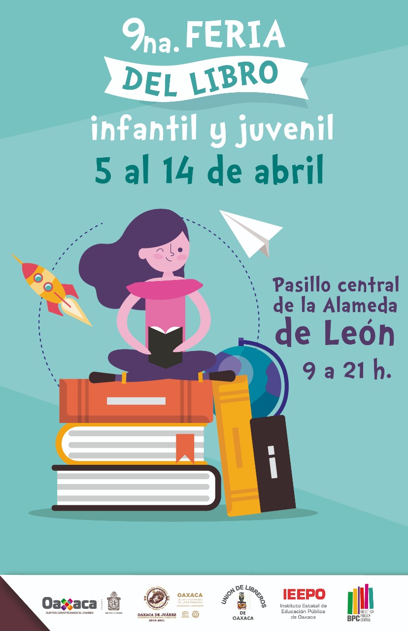Oaxaca.- .- Para el Gobierno Municipal impulsar la lectura en la niñez es de suma importancia pues ésta contribuye en gran medida al desarrollo cognitivo y emocional, por ello a través de la Regiduría de Artes, Cultura y Patrimonio Inmaterial y de Educación, Ciencia y Tecnología, hace extensiva la invitación a la Novena Feria del Libro Infantil y Juvenil que se llevará a cabo del 5 al 14 de abril, en un horario de 9:00 a 21:00 horas, en el pasillo central de la Alameda de León.