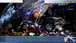 Este día, el frente frío No. 7 interaccionará con una zona de baja presión con alta probabilidad de desarrollo ciclónico o po...