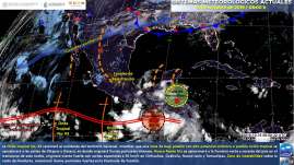 Para hoy, la onda tropical No. 44 se desplazará sobre los estados del sur y occidente del país, una zona de baja presión con pr...
