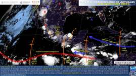 Para hoy, canales de baja presión se extenderán a lo largo de la Sierra Madre Occidental y sobre el sureste del territorio nacio...