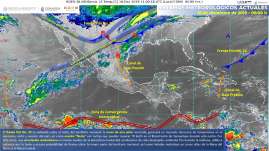 Este día, el frente frío No. 23 recorrerá la Península de Yucatán, originando lluvias muy fuertes a intensas sobre el sureste...