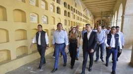 Oswaldo García Jarquín informa al gobernador Alejandro Murat la realización de trabajos de consolidación estructural del campo...