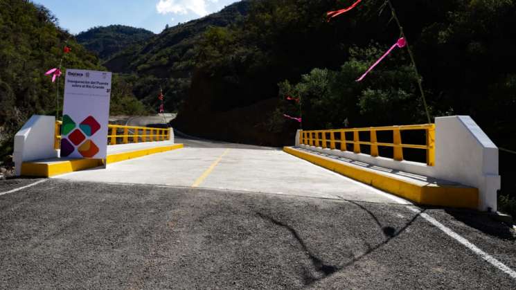 Oaxaca.- Con una inversión superior a los 16.2 millones de pesos, el gobernador Alejandro Murat Hinojosa inauguró el puente vehicular Río Grande, que comunica a la cabecera municipal de este ayuntamiento con el entronque carretero Oaxaca-Ixtlán, así como la modernización de un tramo carretero en la demarcación del mismo.