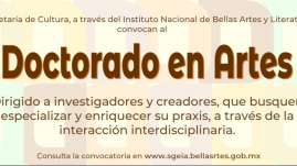 Emite el INBAL convocatoria para ingresar al Doctorado en Artes