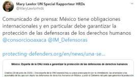 El día de hoy Mary Lawlor, la Relatora Especial sobre la situación de las personas defensoras de derechos humanos de la ONU emit...
