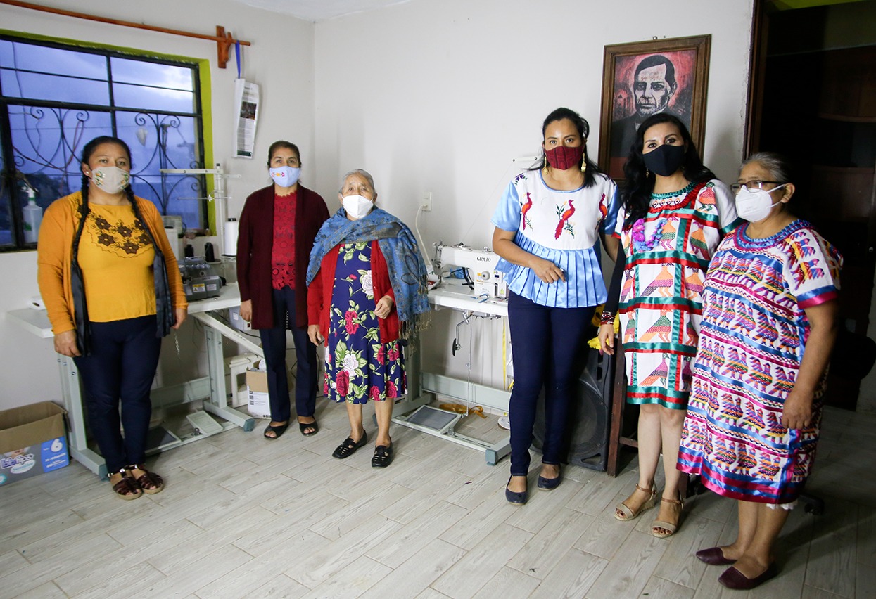 Eunice Lara López Vargas del grupo artesanal de Huautla de Jiménez destacó que las dos máquinas de coser y una plancha de vapor entregadas por el Gobernador Alejandro Murat a través de la Secretaría Nacional del Empleo ha sido de gran apoyo para trabajar y mejorar la calidad de sus prendas.