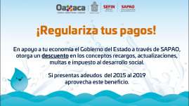Otorgan SAPAO descuento del 100% en recargos, multas y actualizar