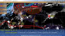 Este día, la onda tropical No. 22 se extenderá al sur de Jalisco y ocasionará lluvias fuertes a muy fuertes en el occidente mex...