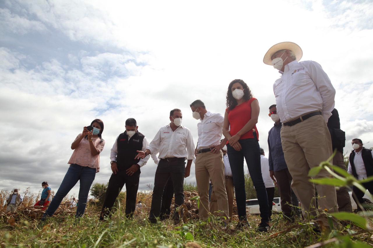 En gira de trabajo, el Mandatario Estatal recorrió junto a la secretaria del Trabajo y Previsión Social (STPS), Luisa María Alcalde Luján, y el secretario de Agricultura y Desarrollo Rural (Sader), Víctor Manuel Villalobos Arámbula, las escuelas de campo en donde becarios del programa Jóvenes Construyendo el Futuro realizaron sus prácticas.