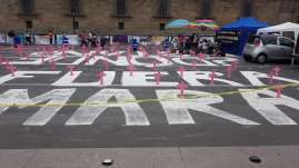 Las familiares de personas desaparecidas reunidas en un plantón en el Zócalo frente al Palacio Nacional, celebraron el comunica...