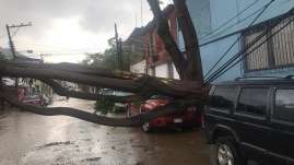 Lluvia con viento provoca caída de árboles en Oaxaca