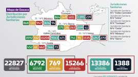 Oaxaca lleva15 mil 266 confirmados por covid.19 y mil 388 muertes