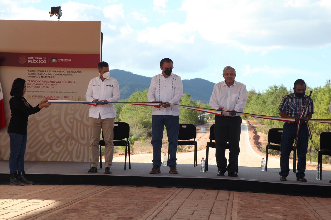 “Estos caminos representan la esperanza de los pueblos para mover sus productos si se dedican al sector agrícola, generar comercio o llegar a los servicios de salud”, expresó el Mandatario Oaxaqueño al inaugurar junto al Presidente de México el camino rural de Santiago Nejapilla, municipio perteneciente a la Mixteca oaxaqueña.