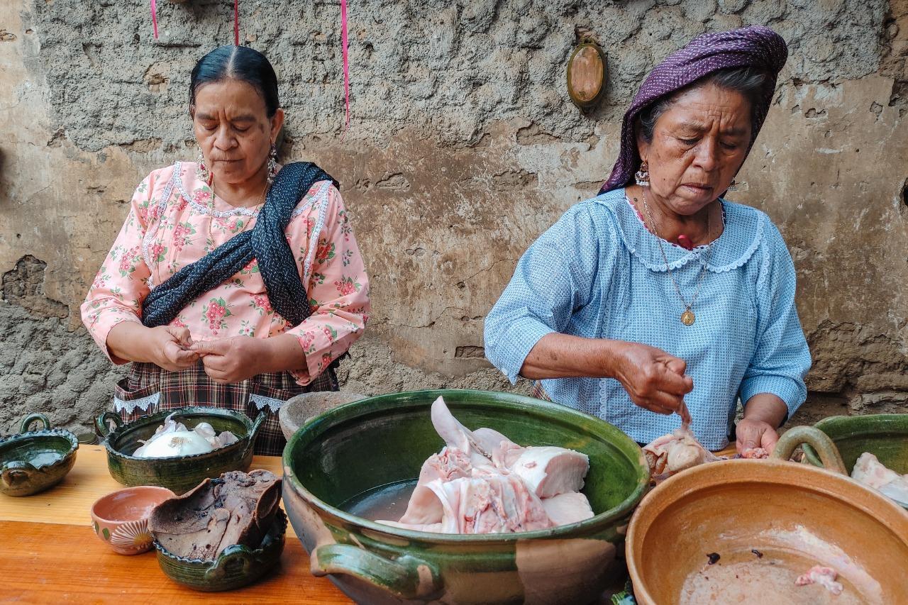 Ellos conjuntan el conocimiento de cocineras que han aprendido sus recetas de generación en generación y de quienes son invitadas a cocinar en fiestas patronales o mayordomías. “Respetamos el uso de ingredientes, técnicas y tiempos de la cocina tradicional; procesos que compartimos en el video que se está difundiendo para elegir al ganador de esta categoría”-