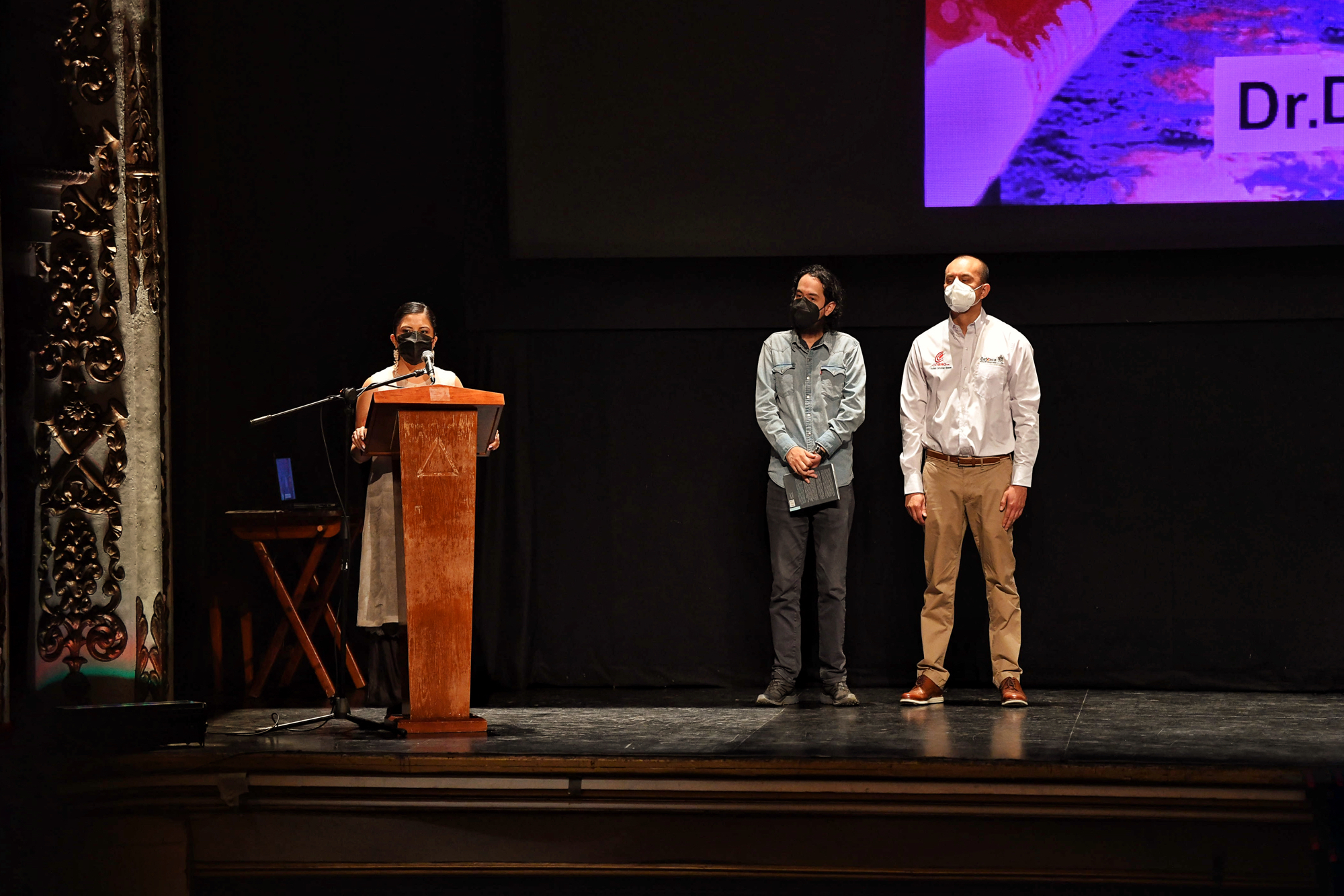 Como anfitriones y presentadores de Neri Vela, estuvieron presentes Vania Reséndiz Cerna, directora general de la FILO; Rodrigo González Illescas, director general del Colegio de Bachilleres de Oaxaca (COBAO); y el escritor Jorge Comensal.