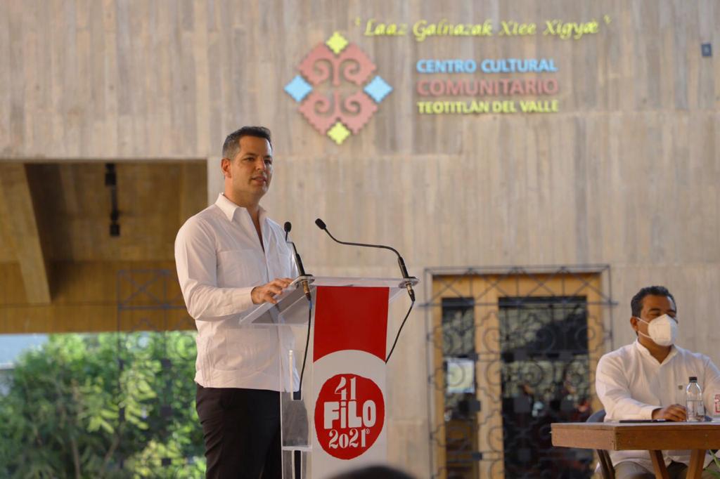 “Como en cada edición, la Feria se reinventa y se adapta a los tiempos que corren. Con pandemia o sin pandemia, siempre hay ocasión para la fiesta de las y los amantes de los libros. Por lo tanto, la reflexión en esta edición número 41 irá en torno al medio ambiente, a la diversidad, a la inclusión, a la comunidad, a nuestras lenguas originarias y a nuestro futuro compartido”, enfatizó el Gobernador en compañía de su esposa, la presidenta honoraria del DIF Oaxaca, Ivette Morán de Murat.