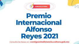 Abren convocatoria para el Premio Internacional Alfonso Reyes 2021 Boletín No. 480 - 23 de julio de 2021 Las candidaturas pod...