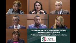 En la Cámara de Diputados, la titular de la Secretaría de Cultura, Alejandra Frausto, compareció antes las comisiones unidas d...