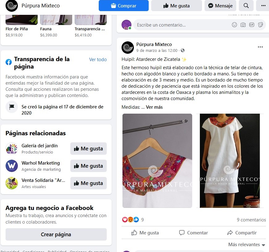 Con publicidad engañosa, Púrpura Mixteco, se hace pasar como parte de la cooperativa y las comunidades, que en sus pots en su cuenta de Facebook, hace una descripción totalmente ajena a la cosmovisión que son bordados y entretejidos en las prendas tradicionales comunitarias.