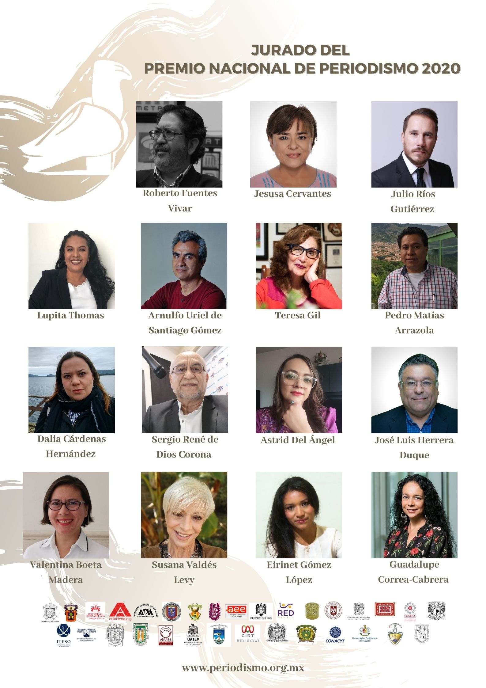 El jurado está integrado por 15 profesionales que combinan el ejercicio periodístico, la docencia y representan a la sociedad civil organizada. Por primera vez, el grupo tiene mayoría de mujeres, es un grupo plural y son procedentes de la Ciudad de México, Michoacán, Jalisco, Nuevo León, Yucatán, Sonora, Oaxaca, BC y Veracruz; además de una mexicana que radica en Washington DC.
