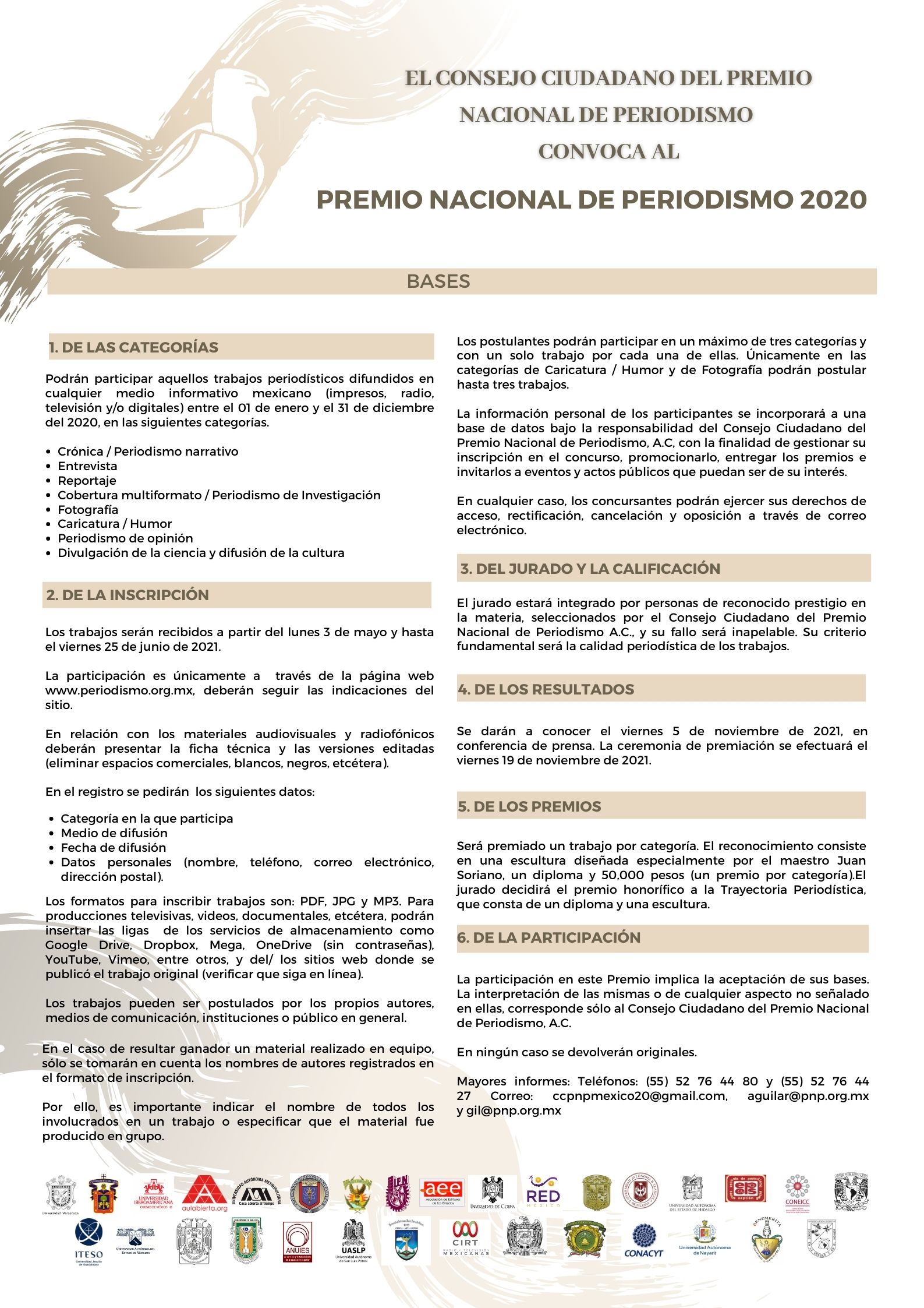 La presentación del Premio Nacional de Periodismo 2020 se realizó a través de las redes sociales del Consejo Ciudadano de Premio Nacional de Periodismo, AC (CCPNP). (Ver videos en Facebook: https://cutt.ly/pbcVCCU , Twitter: https://cutt.ly/ubcB0cp y Youtube: https://cutt.ly/hbcV19y )