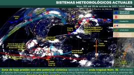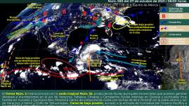 Este día, la zona de baja presión con alto potencial ciclónico asociada con la onda tropical Núm. 35, al sur de las costas de ...