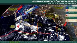 Este día, la Tormenta Tropical "Enrique" se localizará al sureste de las costas de Baja California Sur, debilitándose gradualme...