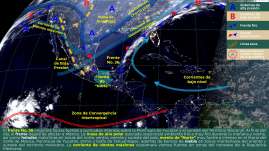 Para este día, el frente No. 36 se desplazará sobre la Península de Yucatán y sureste del Territorio Nacional, en donde origin...