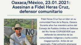 Condenamos el crimen del defensor comunitario Fidel Heras Cruz