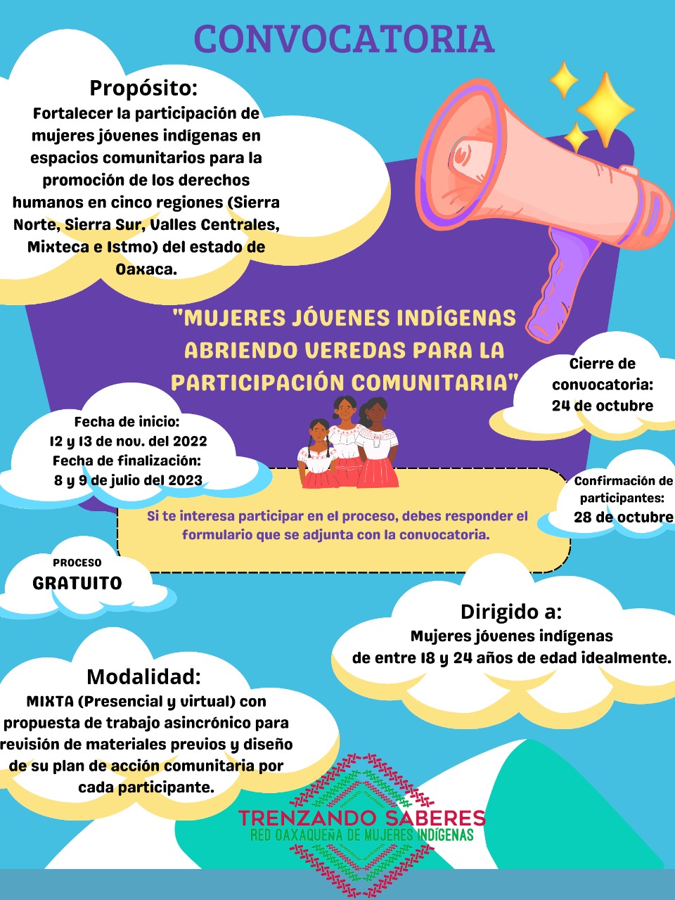 Convocatoria mujeres jóvenes indígenas abriendo veredas