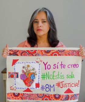 La artista Rosa Borrás (Ciudad de México, 1963), actualmente vive en la ciudad de Puebla. Estudió Diseño Gráfico, Artes Plásticas y Gestión Cultural. Se dedica a la gráfica, el bordado y la experimentación textil y, a través de estas disciplinas, desarrolla temas como la identidad, el género, lo doméstico, la memoria y los derechos humanos. También imparte talleres de gráfica y bordado.