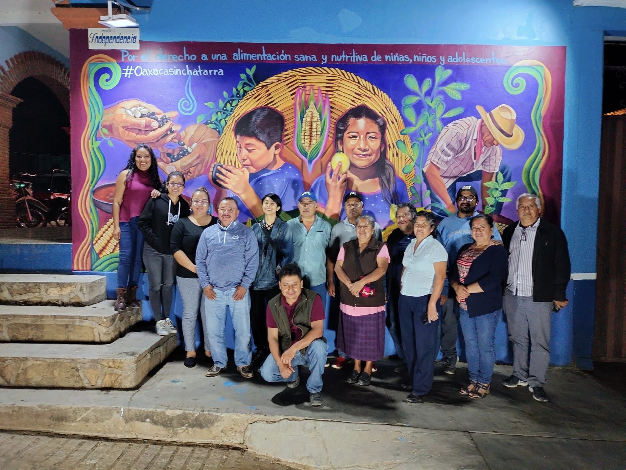 En el contexto de la campaña por el derecho de niñas, niños y adolescentes a una alimentación sana y nutritiva este martes 15 de noviembre del 2022, se llevó a cabo la develación del mural en la comunidad de Santa Catarina Quiane, pintado por la artista Ana Xhopa, en el cual se plasman algunos elementos característicos locales, como alimentos tradicionales, elaborados y que se cultivan en la comunidad.