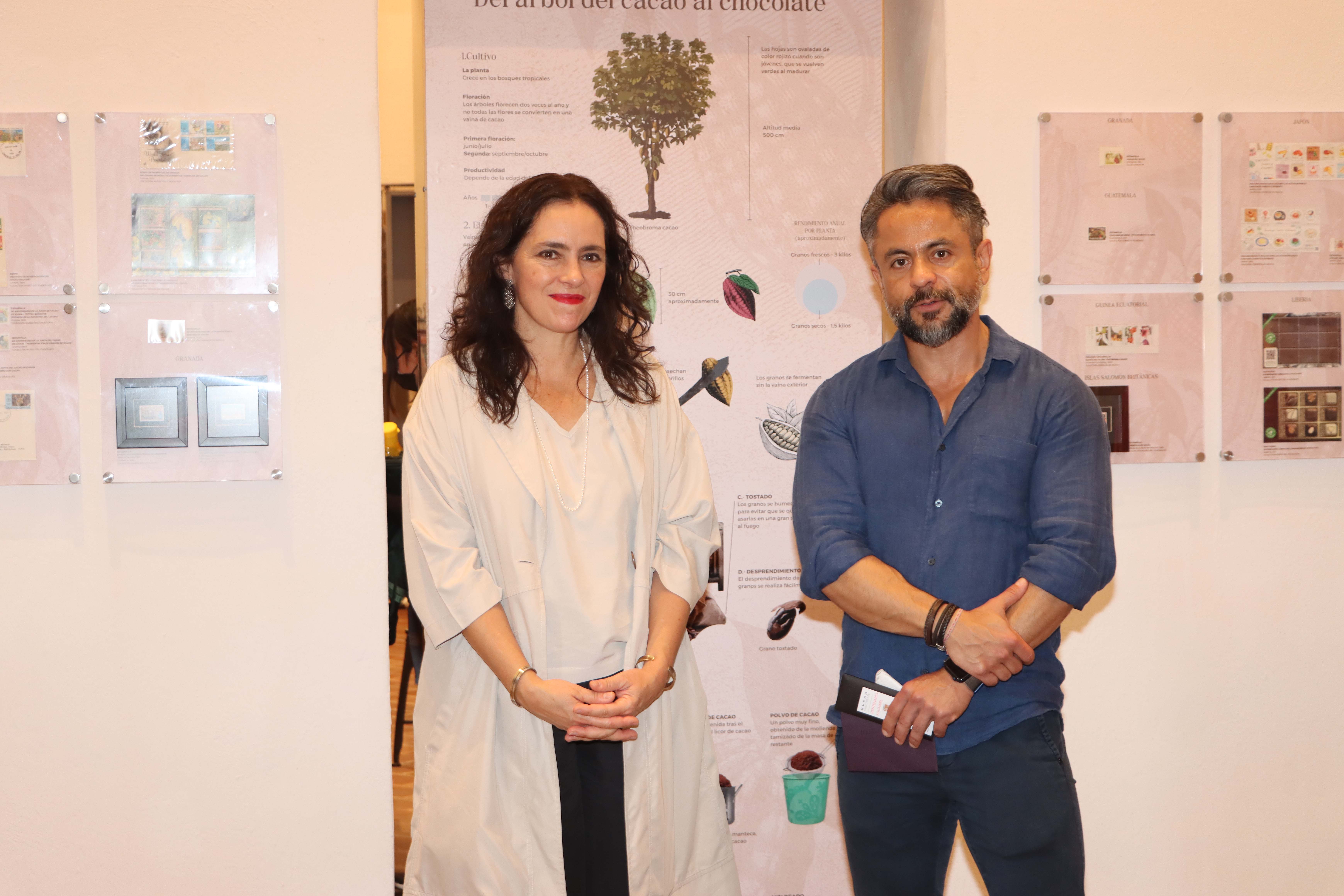 La directora del Museo del Chocolate, Ana Rita Garciìa-Lascurain y el director del Museo de la Filatelia de Oaxaca, Eduardo Barajas, encabezaron la apertura de “Cacao Postal”, la cual reúne timbres postales, sobres, sobres de primer día de emisión, tarjetas postales y hojas recuerdo de 44 países que han emitido estas piezas con este tema, como: Brasil, Colombia, Japón, Portugal, Bélgica, Nigeria, Francia, Malasia.