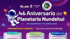 Planetario Nundehui celebrará 46 años con diversas actividades El magno festejo tendrá lugar el próximo sábado 16 de julio...