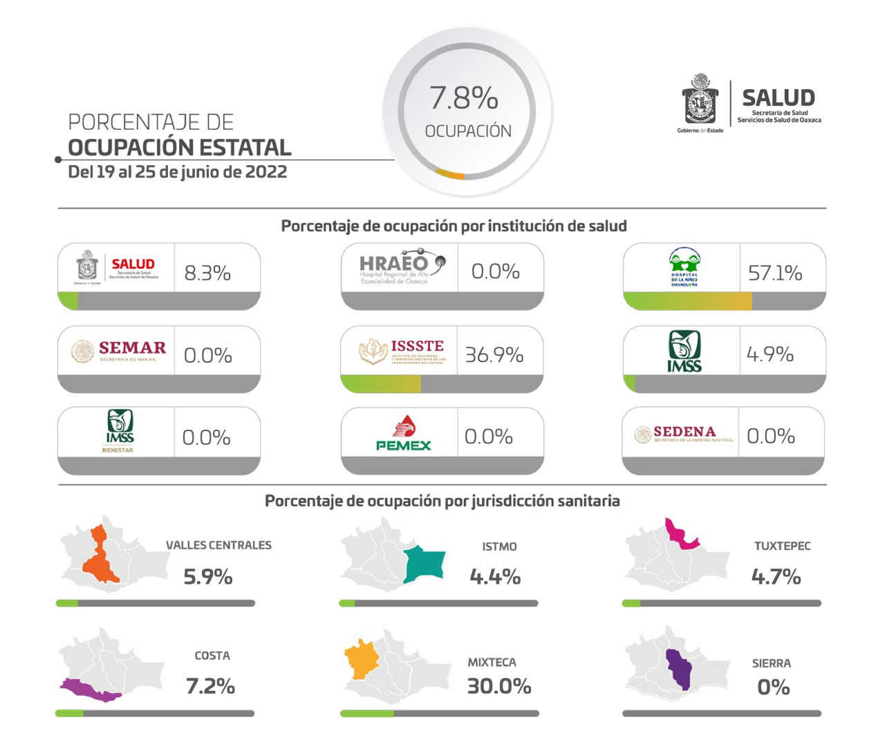 Mientras que el global de defunciones desde el inicio de la pandemia a la fecha se colocó en 6 mil 225 pérdidas de vidas humanas. En tanto, en los últimos siete días se contabilizaron tres decesos a causa de esta patología respiratoria y el promedio de ocupación hospitalaria para la atención a pacientes con complicaciones derivadas de esta enfermedad fue de 7.8%.