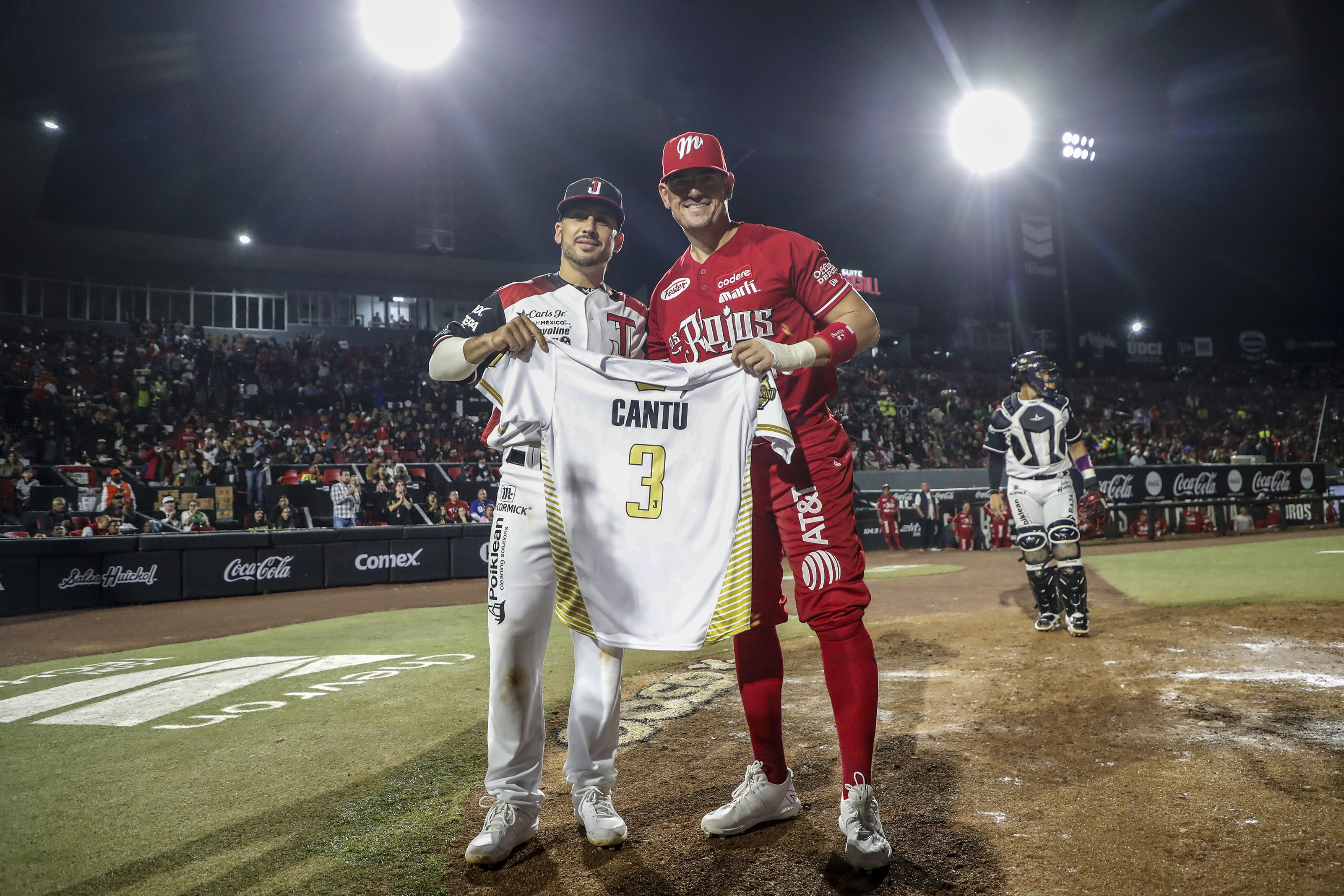 Al cerrar la quinta entrada del tercer juego de la serie entre Diablos y Toros, Jorge Cantu fue llamado a escena para recibir una casaca de Toros de Tijuana con su apellido y el número 3 que lo acompañó gran parte de su carrera, mientras en el sonido local se hacía una breve reseña de su exitoso paso por los diamantes.
