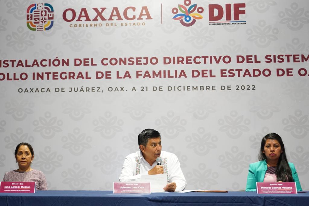 Oaxaca.- El Gobernador del Estado de Oaxaca, Salomón Jara Cruz, instaló este miércoles de manera formal y legal, el Consejo Directivo del Sistema para el Desarrollo Integral de la Familia (DIF) del Estado de Oaxaca, mediante el cual se establecerán las directrices para atender y dar seguimiento a los asuntos relacionados con diversos sectores de la población que atiende está noble institución de asistencia social.