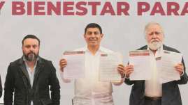 Mesa de Construcción de Paz con Justicia y Bienestar para la Nación Triqui El Gobernador de Oaxaca Salomón Jara, y el su...