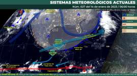 Este día, el frente frío Núm. 23 recorrerá rápidamente el sureste del territorio nacional y la Península de Yucatán, a su p...